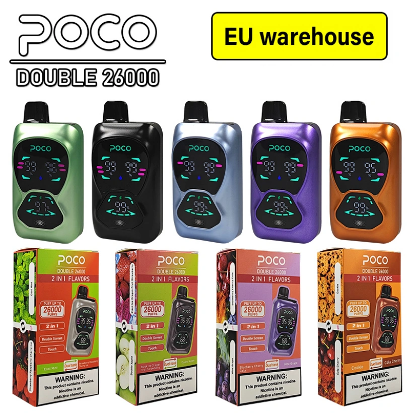POCO DB 26000 puffs Disposable Vape delivers up to 26,000 puffs with a powerful 850mAh battery and 15+15ml e-liquid. The dual screens show oil and power levels for easy control, while the mesh coil provides smooth, rich flavor. This 2-in-1 device offers 15 great flavors and fast Type-C charging. Ships fast and free from the EU warehouse.