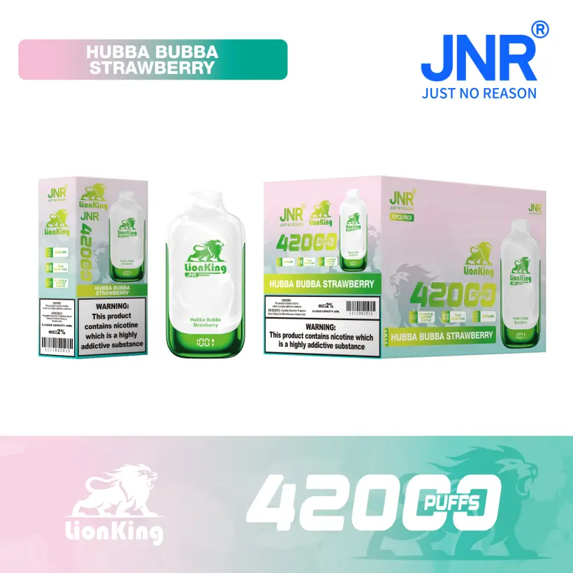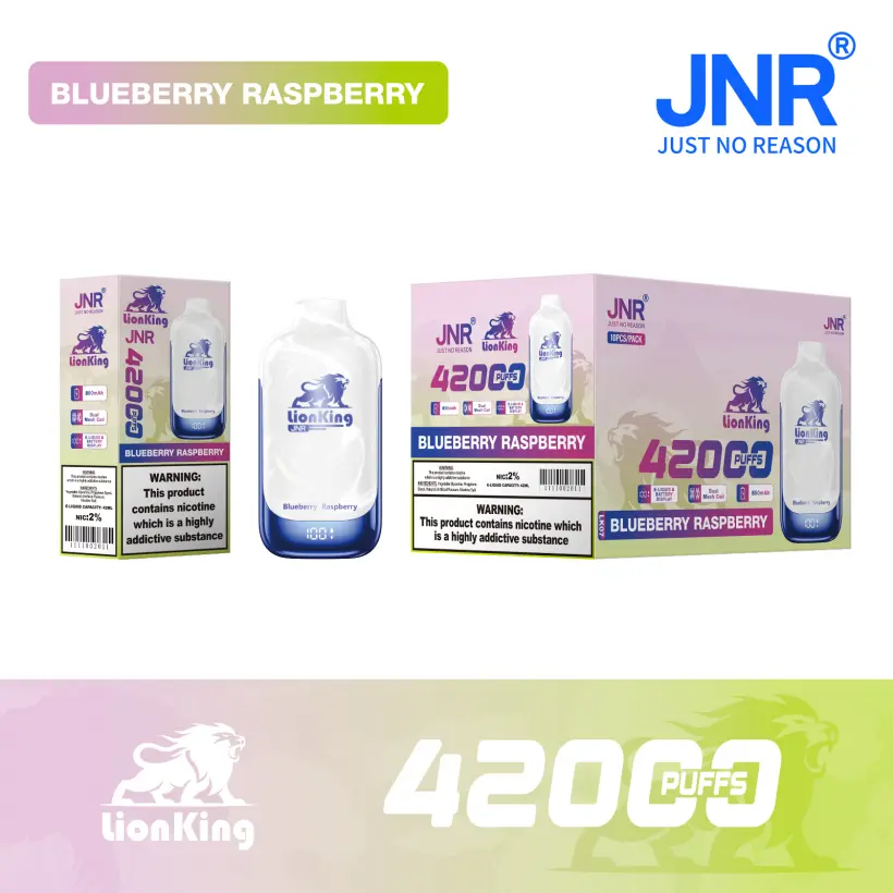 Puff JNR 42K Lion King 42000 Puffs Disposable Vape Pen delivers up to 42,000 puffs with an 850mAh battery and smooth mesh coil for rich, flavorful vapor. Featuring a smart screen for easy monitoring, Type-C charging, and 10 delicious flavors. Ideal for wholesale or retail with bulk packing (10pcs/box, 200pcs/carton) and free EU warehouse shipping.